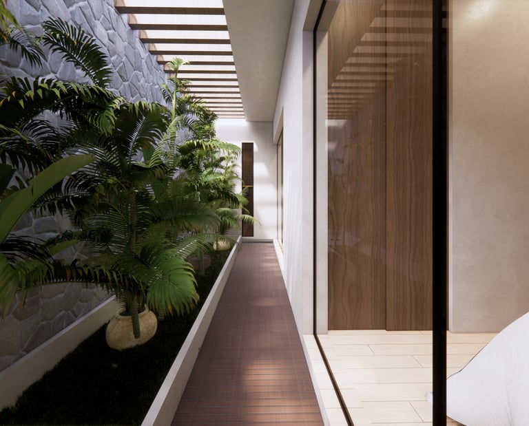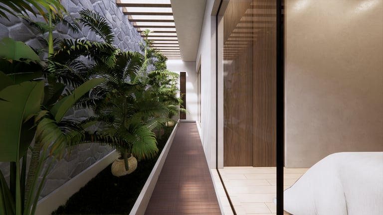 Casa Frontera es una residencia de descanso concebida para una chef estadounidense, donde la simplicidad arquitectónica se combina con una materialidad honesta y atemporal. El proyecto apuesta por una volumetría contenida y líneas limpias que transmiten calma, incorporando piedra, texturas neutras y elementos naturales que dialogan con el entorno. Los espacios están pensados para desconectar del ritmo cotidiano, privilegiando la privacidad, la sombra y una atmósfera serena que invita a habitar de forma pausada y consciente.